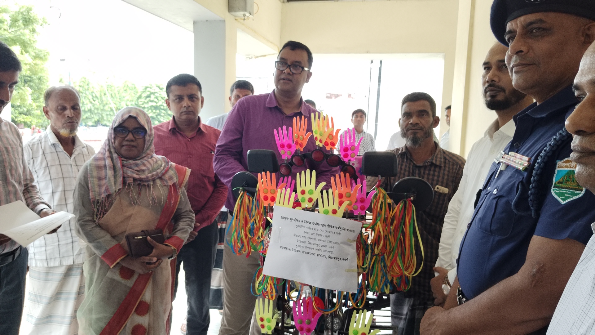 ভূমি সেবা- জটিলতা নিরসন নিয়ে শুনানি শেষে প্রধান অতিথি নওগাঁ জেলা প্রশাসক মোহাম্মদ আব্দুল আউয়াল উপজেলা সমাজ সেবা অধিদপ্তরের সহযোগিতায় হুইল চেয়ার ও চার্জার ভ্যান, উপজেলা ত্রাণ ও দুর্যোগ মন্ত্রনালয়ের সহযোগিতায় শুকনা খাদ্য, উপজেলা কৃষি বিভাগের সহযোগিতায় কৃষি যন্ত্র বিতরণ ও একটি ফলজ বৃক্ষ রোপন করেন তিনি।